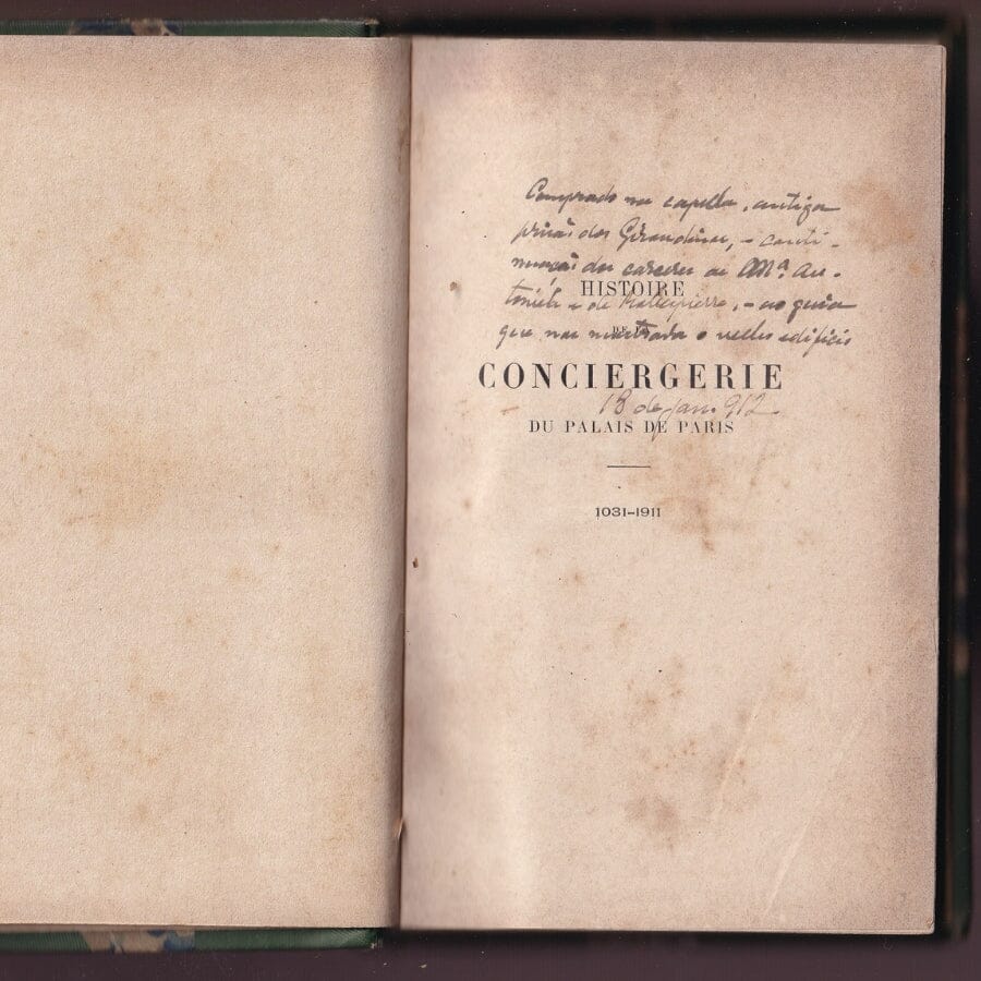 Baron Rio Branco annotates his copy of Histoire de la Conciergerie , a work about one of the most emblematic monuments of Justice in Paris.