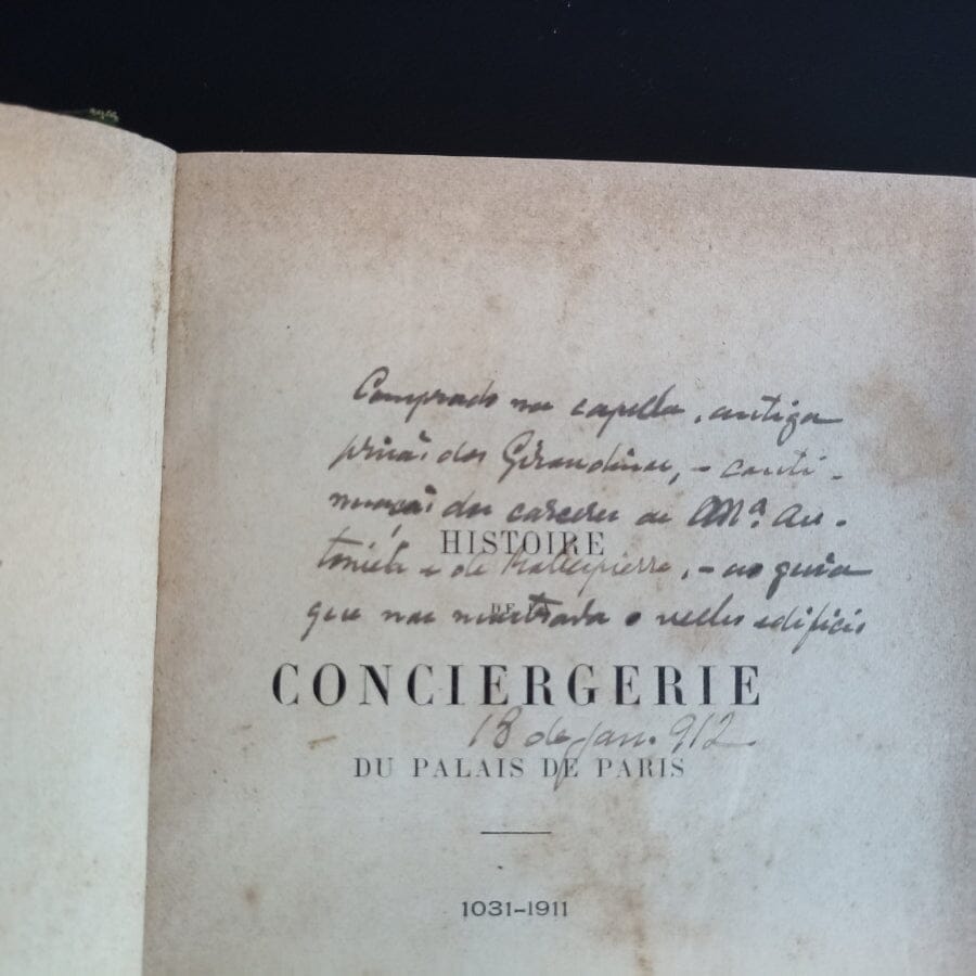 The book "Histoire de la Conciergerie du Palais de Paris ," which belonged to Baron Rio Branco, contains handwritten annotations by him.
